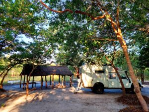 Und los geht’s. Zwecks Traumabewältigung der defekten Dieselleitung wegen, fahren wir nochmals via Itezhi-Tezhi zu Ruth und Brad in die Chibila Lodge, auch hier ein Heimkommen zu Freunden und anschliessend tuckern wir die berüchtigte Strecke ab. «Vielleicht werden Sie gar keine Schwierigkeien haben, vielleicht aber deren genug, die Ihnen das Reisen für den Rest Ihres Lebens verleiden…»1 Die Buschmechanik hält dicht! Es wird uns nicht verleiden.
