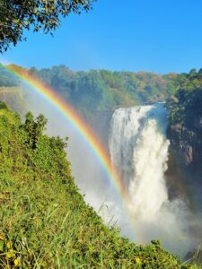 Wie immer in einem neuen Land, müssen wir zuerst den Groove spüren. Wir verbringen einige Tage in der Touristenblase von Victoria Falls, spulen das Touristenprogramm ab – Vic-Falls – diesmal mit viel Wasser, bevor wir in die Wildnis eintauchen. Bemerken schon jetzt die Herzlichkeit der Menschen. Ich frage auf der Post, wo ich eine SIM Karte kaufen könne und schon begleitet mich die nette Ivory zum Econet Shop, derweil sich Stefan mit dem Lokführer der ROVOS Rail unterhält.