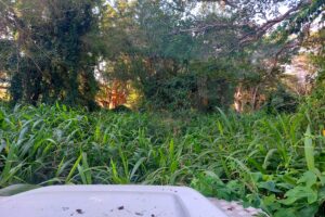 Wir flüchten in ein Game Reserve und finden Ruhe und Sauberkeit, eine wunderschöne Landschaft mit Flamingos und Auenwäldern. Eine Fahrt durch den Urwald endet abrupt, weil wir die Piste vor lauter Bäumen und Schilf nicht mehr finden.