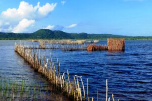 Mit einer speziellen Bewilligung fahren wir zum Kosi Bay Mouth. Hier rücken im Meer eigenartige Palisaden ins Blickfeld. Die Thonga wenden seit über 700 Jahren eine einzigartige Fischfangtechnik ohne Netze an. Mit Leitzäunen aus Holzstecken werden die Fische in einen Kraal, eine Fischfalle, geleitet, aus dem sie nicht mehr herausfinden und so von den Fischern mit einem Spiess aufgestochen werden.