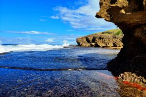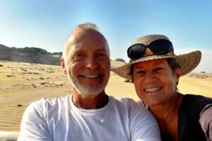 Über 25’000-jährige Dünen führt unsere Fahrt, sie sind bewachsen und wir fühlen uns mehr im Jura als in Südafrika, wenn das Rauschen der gewaltigen Wellen nicht wäre. Es gibt aber nicht nur das Meer zu bewundern, die knallorange Ananas ist die Frucht der Brotpalme und Stefan findet auf einem Spaziergang dem Strand entlang etwas Grünes an einem Felsen. Eine Weichkorallenkolonie, schwammige Dinger in leuchtenden Farben. Menschen finden wir relativ wenige. Die Strände sind zwar bilderbuchmässig schön, aber wegen vorgelagerten Felsen ist hier nichts mit Schwimmen oder Surfen. Lange Strandspaziergänge führen uns auf schöne Sanddünen hinauf, von wo aus wir mit dem Fernglas die springenden Humpback Wale beobachten können. Wir werden sie auf einer Whalewatching-Tour noch von nahem sehen können. Die Buckelwale werden hier im August ihre Babies gebären bevor sie in die Antarktis zurückkehren. Was noch beeindruckender ist als das Springen, ist ihr Singen. Der Gesang trifft mitten ins Herz.