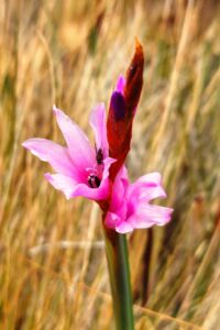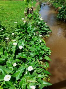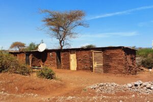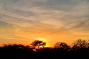 Kaum verlässt man die See Region, wird bewässert was das Zeug hält, Zwiebeln für Kenya werden hier angebaut, es muss sich lohnen, wie die luxuriösen Satellitenschüsseln auf den Lehmhütten zeigen – man muss Prioritäten setzen, denken wir! Blühende Jacarandas zeugen von der kommenden Regenzeit. (Sie blühen vor der Regenzeit!)