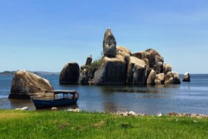 Wir folgen dem Victoria See. In Mwanza ziehen uns die skurrilen Steinformationen in ihren Bann, ganz eindrücklich ist die Bismarckformation im See. Nach dem Besuch einer Garage, wo wir Randulinas lockere Schrauben anziehen lassen, zieht es uns schnell aus der Grossstadt heraus.