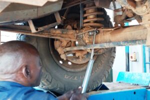 In Arusha wird Randulina nochmals operiert und erhält neue Gummidämpfer (Bushes) und einen Service. Wir warten…