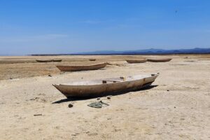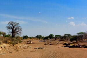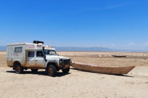 Mit Baumwolle beladene LKW’s und mit Menschen vollgestopfte Massai-Taxis, Ochsen- oder Eselkarren begegnen uns. Der Lake Eyasi ist ausgetrocknet, die Boote liegen im Trockenen und die Fischer …warten… auf Regen.