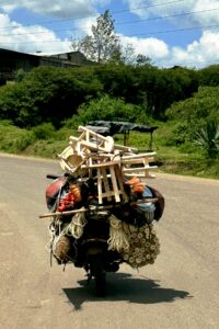 Von der Grossstadt fahren wir hinaus auf’s Land durch die Aberdares, wo man sich im kühlen Schottland wähnt und hinunter ins Tiefland. Die Landschaften wechseln spektakulär. Das Klima ändert auch. Marsabit – Ort der Kälte ist noch ein Zwitter – tagsüber heiss, morgens früh neblig aber bald gilt statt Daunenjacke am Abend ärmellos, statt feucht-kalt trocken-heiss. Nicht nur die Landschaften, auch die Architektur ändert, die Samburu und Turkana bauen aus Naturmaterialien jurtenähnliche Behausungen, die mit Lehm, Tüchern und Planen abgedeckt werden. Und neben den Rinderherden der Masai führen die Samburu ihre Kamele spazieren, Ziegen sind ein weiterer Stolz.