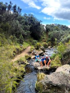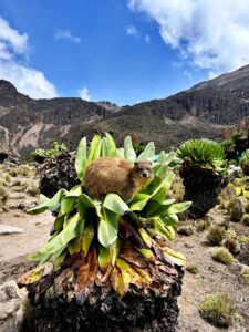 Manuel & Martina erwarten uns und uns alle Vier ein eisiges Abenteuer. Heiss und kalt liegen in Afrika so nah zusammen. Die Besteigung des Peak Lenana, 4985müM, dritthöchster Gipfel des Mount Kenya Massiv (Batian 5100m / Nelion 5189m erfordern technisches Klettern) nehmen wir mit «unserer» Crew unter die Füsse. Die erste Etappe führt schnöde auf einer Betonpiste zum Camp auf 3300m. Kaum angekommen beginnt es zu regnen, zum Glück waren wir schneller und sitzen im Trockenen. Unsere Träger haben bereits die beiden Zelte aufgestellt und der Koch serviert heissen Tee. Doch der Regen verheisst Wetterglück für die kommenden Tage. Unter einem enzianblauen Himmel führt ein sehr schön angelegter Wanderweg durch eine wunderbare Landschaft mit einer aussergewöhnlichen Pflanzenwelt hinauf auf 4200m zum Shipton’s Camp, wo uns schon die Rock Hyrax begrüssen. Die vorwitzigen, murmeltierähnlichen Tierchen sind Menschen gewohnt und vollführen allerhand Schabernack. Die bitterkalte Nacht lässt uns einmal mehr nicht schlafen und die Gedanken kreisen um den steilen Aufstieg. Um 3Uhr morgens kriechen wir aus den Schlafsäcken, der Berg erwartet uns. Im Schein der Stirnlampen steigen wir 800HM hinauf zum Gipfel, den wir kurz vor Sonnenaufgang erreichen. Ein weiteres Erlebnis der Superlative gemeinsam mit Manuel und Martina – was für ein seltenes Glück. Via Chogoria Route steigen wir nach einer Stunde leichtfüssig ab, ein feines Zmorge mit frischen Früchten, Mandazi (Nationales Zmorgebrötli), Pancakes und heisser Schoggi steht beim Mintos Camp schon bereit, da die Träger und der Koch eine andere Route wanderten, der Abstieg führt weiter mit Aus- und Weitsicht und zum letzten Camp, wo wir die müden Füsse ins eiskalte Wasser strecken. Anderntags werden wir nach etwa 2 –stündiger Wanderung von einem Land Rover abgeholt – die ganze Truppe wird eingepfercht wie in einem Masai-Taxi. Durch Primärwald und Teeplantagen fahren wir ins Städtchen Chogoria, wo das Trekkingabenteuer abgeschlossen ist.